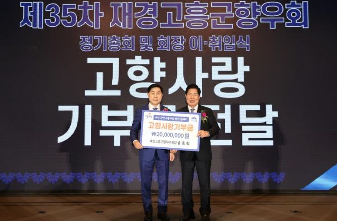 첫 주인공은 제35대 재경고흥군향우회장으로 취임한 송호림 회장으로, 지난 7일 여의도 더파티움 행사장에서 고흥군에 2,000만 원을 기부했다.