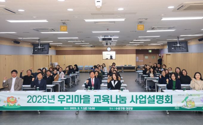 (아름다운교육신문) 대구 수성구는 지난 7일 수성구청 대강당에서 ‘2025년 우리마을 교육나눔 사업설명회’를 개최했다. 이날 행사에는 8개 마을 추진위원과 동 관계자 등 50여 명이 참석했다.