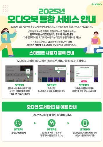 (아름다운교육신문) 울주도서관은 그동안 동부도서관, 남부도서관, 울주도서관에서 개별적으로 운영 중이던 소리책(오디오북) 서비스를 3월부터 통합해 운영한다.