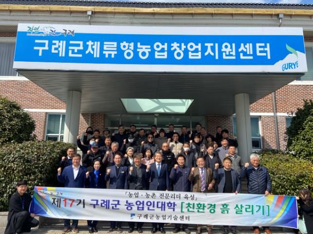 구례군 농업인대학 학장인 김순호 군수는 “농업인대학을 통해 흙의 소중한 가치를 되새기고, 흙 살리기 운동을 실천하는 선도농업인으로 구례 농업 발전의 주역이 되기를 바란다”라고 말했다.