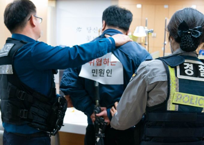 이날 훈련은 민원인과 대면상담 중 폭언·기물파손 등의 비상상황이 발생하는 것을 가정해 진행됐다.
