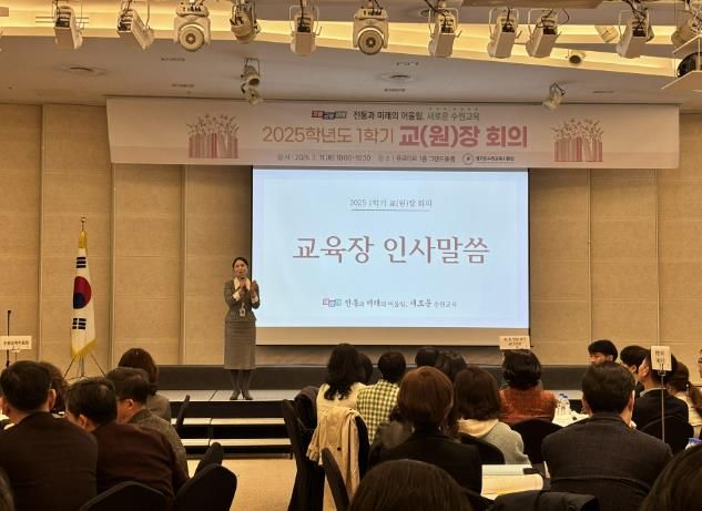 (아름다운교육신문) 경기도수원교육지원청은 11일 화성 푸르미르 1층 그랜드볼룸홀에서 관내 유·초·중·고·특 교(원)장과 수원교육지원청 직원(총 277명 참석)을 대상으로 '2025학년도 1학기 교(원)장 회의'를 개최했다.