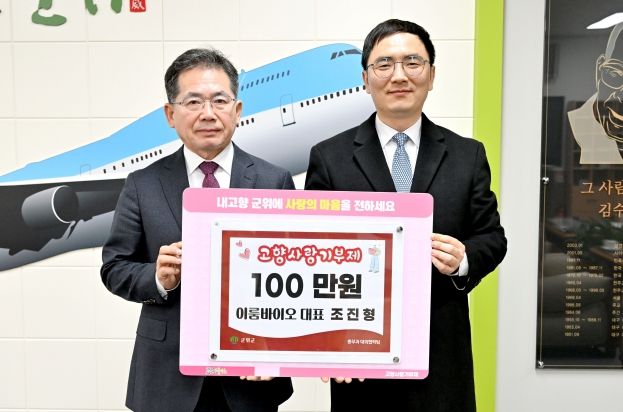 (아름다운교육신문) 지난 10일 ㈜이룸바이오 조진형 대표가 군위군청을 방문해 고향사랑기부금 100만원을 기탁했다.