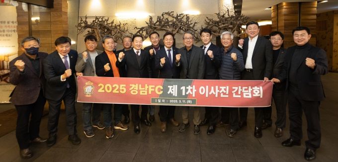 경상남도는 11일 경남FC 이사들과 간담회를 열고, 구단의 발전 방안과 1부 리그 승격을 위한 전략을 논의했다. 이날 간담회에는 박완수 도지사를 비롯해 구자천 신성델타테크 회장, 최재호 ㈜무학 회장, 지현철 경남FC 대표이사 등 20여 명이 참석했다.