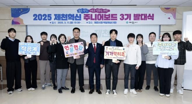 (아름다운교육신문) 제천시가 지난 11일 ‘제천혁신 주니어보드 3기 발대식’을 개최했다. 이날 발대식에는 김창규 제천시장을 비롯한 간부 공무원과 3기 주니어보드 16명이 참석하여 올해의 운영 방향 및 활동 사항을 공유했다.
