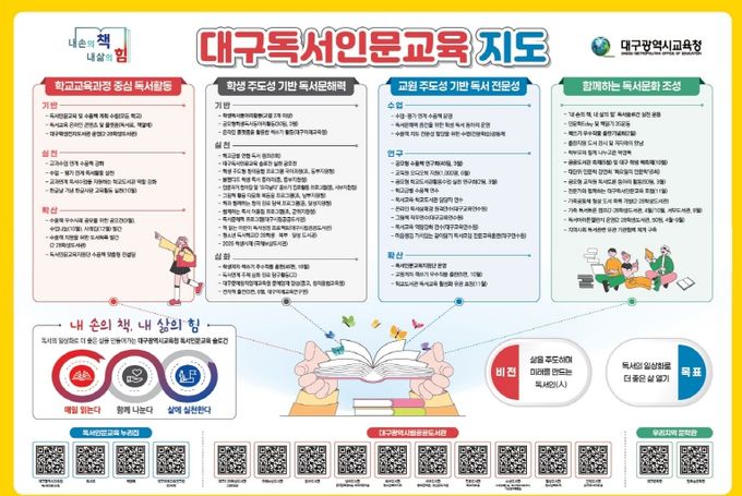 한편, 대구시교육청은 함께하는 독서인문 문화조성을 위해 올해부터 ‘매일 읽는다’,‘함께 나눈다’,‘삶에 실천한다’는 ‘내 손의 책, 내 삶의 힘 실천 3운동’을 가족, 친구, 이웃과 함께 실행할 수 있도록 추진하고 있다.