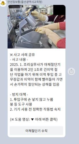 울산교육청은 이 창구에 산업재해 사고 사례, 작업 수칙, 안전 수칙 등을 안내해 현장의 안전의식을 높이고 산업재해를 예방할 계획이다.