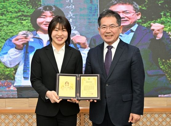 김진열 군위군수는 “뛰어난 실력과 열정으로 많은 사람들에게 감동을 주며 군위군의 자랑스러운 인물이 되어준 허미미 선수를 홍보대사와 명예군민으로 맞이하게 되어 기쁘다”며, “앞으로 군위군의 매력을 널리 알리고, 많은 군민들에게 자긍심을 심어줄 수 있도록 활약을 기대한다”며 감사와 응원의 메시지를 함께 전했다.