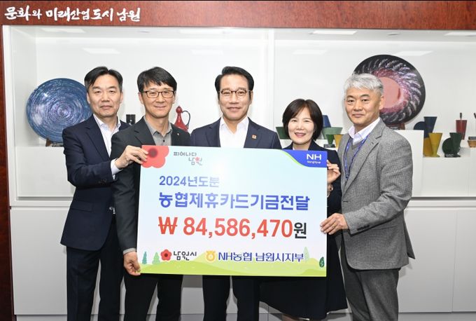 이날 전달된 적립금은 남원시와 농협 제휴카드사 간의 협약을 체결해 발급한 남원시 복지포인트 카드, 법인카드, 보조금 카드 사용금액의 0.1 ~ 1%를 포인트로 적립한 것이다. NH농협 남원시지부는 2006년부터 현재까지 총 19회에 걸쳐 9억 76만원을 남원시에 전달해 왔다.