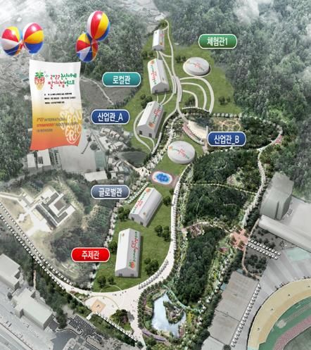 △주제관 △전시체험관 △산업관 △국제학술대회 △부대행사 등으로 구성된다.