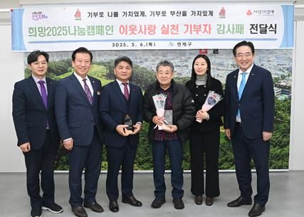 (아름다운교육신문) 연제구는 3월 6일 부산사회복지공동모금회와 함께 '희망2025나눔캠페인 이웃사랑 실천 기부자'에게 감사패를 전달했다.