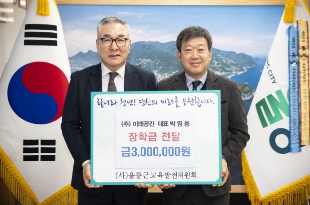 경북 영천 소재의 산업디자인(종합) 전문회사인 ㈜미래공간의 박영동 대표는 울릉군 출신으로, “고향 울릉군 지역 학생들이 학업에 전념하는데 보탬이 되고자 이렇게 장학금을 기탁하게 됐다.”고 말했다.