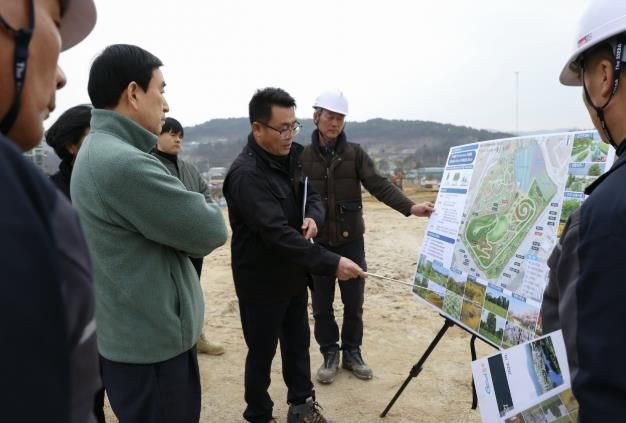 조길형 충주시장은 ‘충주 시민의 숲 2단계 조성’ 사업 현장을 찾아 신규 숲 조성지의 테마와 공정 진행 과정을 설명 듣고, 토목공정 마무리 후 수목 식재 중인 공정을 확인했으며, 사업장 관계자들의 노고를 격려했다.