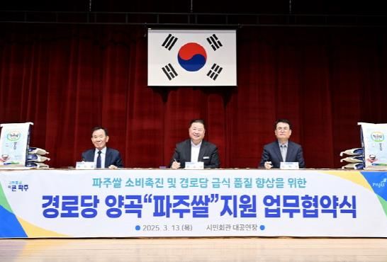 (아름다운교육신문) 파주시는 3월 13일 파주시민회관 대공연장에서 경로당의 급식 품질 향상과 파주쌀의 소비 촉진을 위한 ‘경로당 양곡 파주쌀 지원 업무협약(MOU)’을 체결했다.