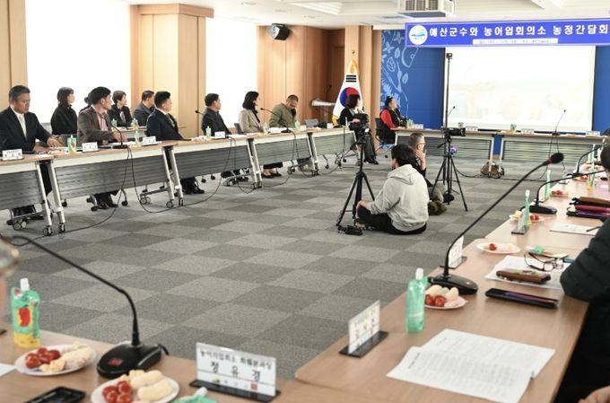 이번 간담회는 예산군농어업회의소 김일영 회장과 소속 단체장, 읍면 지회장, 각 분과별 위원장 및 관계 공무원 등 40여명이 참석했으며, 참석자들은 농정 현안에 대한 사전 건의사항을 공유하고 참여자 질의응답 등을 통해 다양한 의견을 나눴다.
