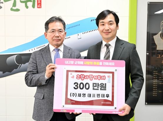 (아름다운교육신문) 지난 13일 주식회사 세영 변태우 대표가 군위군청을 방문해 고향사랑기부금 300만원을 기탁했다.