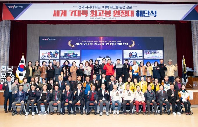 남극 빈슨메시프(4,892m) 정상에서 휘날린 태극기와 함께 구미시가 12년에 걸친 세계 7대륙 최고봉 원정을 마침내 완성했다. 지자체 주도의 세계 7대륙 최고봉 원정으로는 국내 최초의 기록이다. 지난 3월 14일 열린 해단식에는 김장호 구미시장, 구자근 국회의원, 박교상 시의회 의장, 구미시산악연맹 등 200여 명이 참석해 원정대의 성과를 축하하고 감사패를 수여했다.