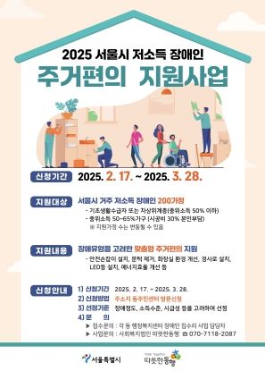 선정된 가구에는 전문 시공업체가 맞춤형 개조를 진행하며, 장애인 주거환경 개선 전문가들이 자문에 참여해 전문적이고 체계적인 지원이 이뤄질 예정이다.