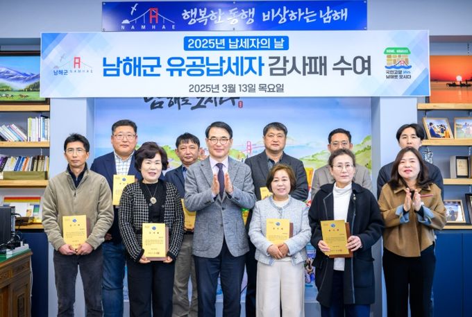 선정된 유공납세자 10명에게는 군 재정 확충 기여도 등을 고려하여 감사패를 수여 했으며, 성실납세자로 당첨된 150명에게는 남해화폐 ‘화전(花錢)’ 3만원을 등기로 발송할 계획이다.