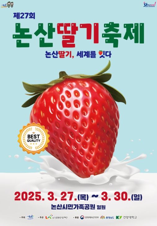 (아름다운교육신문) 오는 27일부터 30일까지 4일 간 논산시민가족공원에서 개최예정인 ‘2025 논산딸기축제’일정이 공개된 직후 전국적으로 뜨거운 관심이 쏟아지고 있다.