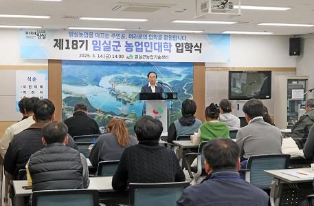(아름다운교육신문) 임실군이 지난 14일 군청 농민교육장에서 제18기 농업인대학 입학식을 개최했다.