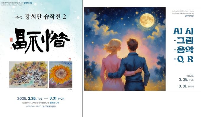 (아름다운교육신문) 인천광역시교육청평생학습관은 갤러리 나무와 다솜에서 3월 공모 전시 ‘추공 강희산 습작전 2’와 ‘AI 시-그림-음악-QR’을 개최한다.