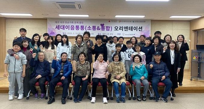(아름다운교육신문) 대구서부교육지원청은 지난 3월 15일 대구서구가족센터에서 조손 가족 13세대 38명(조부모 21명, 유·초·중 손자녀 17명)을 대상으로 조손가정지원사업인 ‘세대 이음 통통’ 가족관계 향상 프로그램을 실시했다.