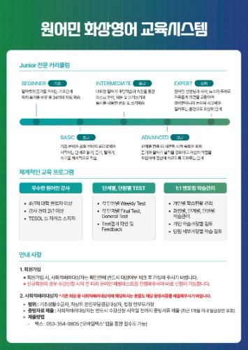 한가지 주의할 점은 화상 플랫폼을 통해 현지 원어민과 실시간으로 진행돼, 각 가정에서는 개인 PC(헤드셋, 웹캠 필수)나 모바일기기와 같은 장비를 구비해야 한다.