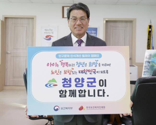 (아름다운교육신문) 김돈곤 청양군수가 17일 보건복지부와 한국보건복지인재원이 주관하는 ‘인구문제 인식 개선 릴레이 캠페인’에 참여했다.