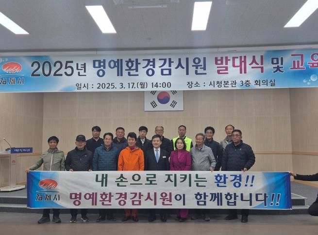 정성주 김제시장은 “명예환경감시원으로 지역 사회의 눈과 귀가 되어 환경오염 행위를 감시하고 시민들에게 환경보호의 중요성을 알리는 중요한 역할을 맡았다”며, “앞으로 명예환경감시원 활동을 통해 보여줄 열정과 헌신은 환경을 보전하는데 큰 힘이 될 것이다”이라고 말했다.