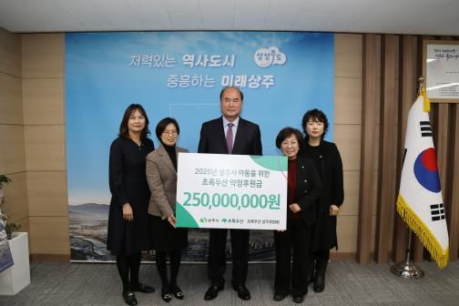 (아름다운교육신문) 초록우산 어린이재단 경북지역본부와 초록우산 상주후원회는 18일 오후 상주시청을 방문하여 상주시 아동을 위한 후원금 2억 5천만원을 지원하기로 약속했다.
