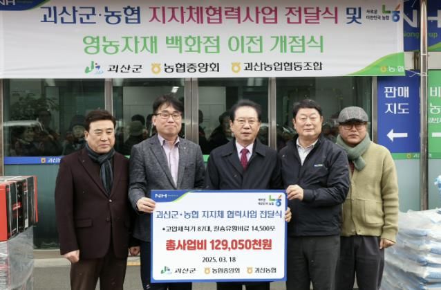 군은 전달식을 통해 괴산농협에 고압세척기 87대와 원예작물용 토양개량제 1만4,500포 등 총 1억 2천9백만 원 상당의 농자재를 지원했다.