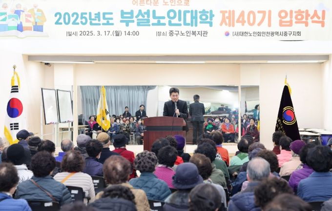 (아름다운교육신문) 김정헌 인천 중구청장이 지난 17일 중구노인복지관에서 열린 ‘(사)대한노인회 인천 중구지회 부설 노인대학 제40기 입학식’에 참석해 인생 제2막을 시작한 어르신들을 응원했다.