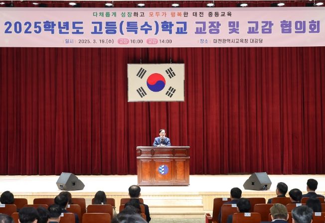 (아름다운교육신문) 대전시교육청은 3월 19일 시교육청 대강당에서 관내 고등학교 및 특수학교 교장․교감 140여명을 대상으로 ‘2025학년도 고등(특수)학교 교장 및 교감 협의회’를 실시했다고 밝혔다.
