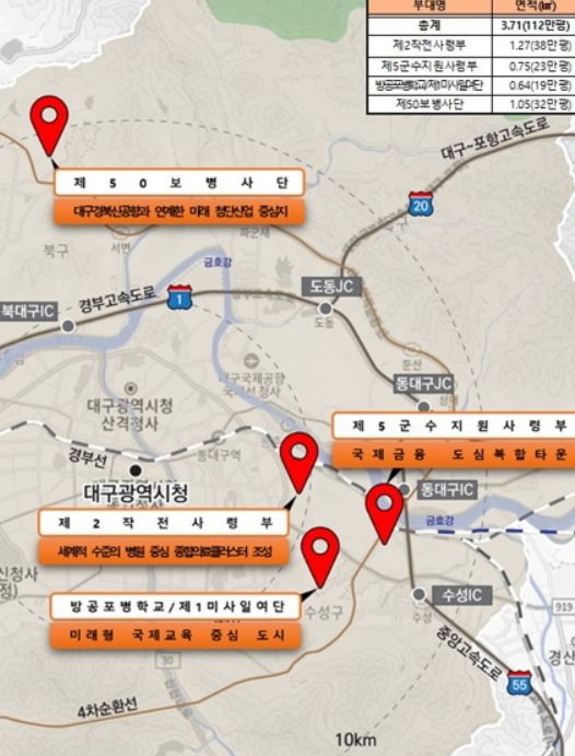 이에 따라 대구시는 국군부대 이전으로 발생하는 후적지를 대구 미래 성장동력으로 조성하는 개발구상을 수립했다.