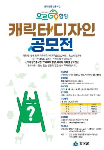 이번 공모전은 함양군의 대표적인 산악 관광 콘텐츠인 ‘오르GO 함양’을 상징적으로 표현하면서 친근감을 동시에 담아낼 수 있는 캐릭터를 발굴하기 위해 마련됐다.