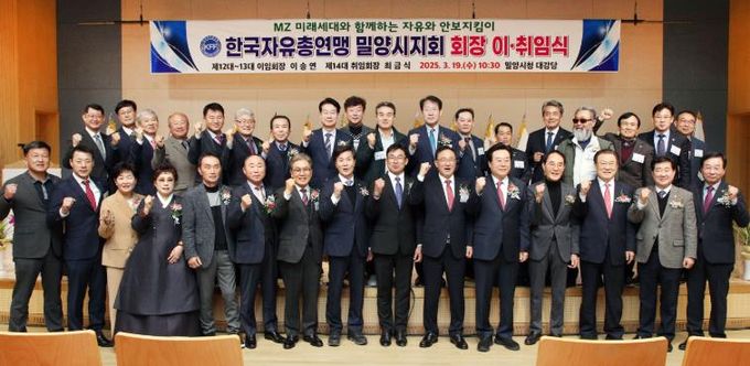 이날 이·취임식은 연맹기 입장을 시작으로 국민의례, 내빈 소개, 공로패 전달 및 표창장 수여, 연맹기 이양 등의 순으로 진행됐으며, 제14대 최금식 회장이 새로이 취임해 올해부터 한국자유총연맹 밀양시지회를 이끌어 갈 예정이다.