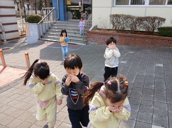 이 안전교육은 유아들이 화재의 위험성과 화재 발생 시 안전하게 대피하는 요령을 숙지하여 침착하게 밖으로 대피할 수 있도록 하기 위함이다. 사전에 소방안전점검으로 사이렌 소리에 관심을 가진 유아들에게 사이렌이 울렸을 때 즉시 코와 입을 가리고 자새를 낮추어 밖으로 이동해야 함을 교육한 뒤 실제로 화재가 발생했다고 가정하고 대피해보는 훈련을 진행했다.