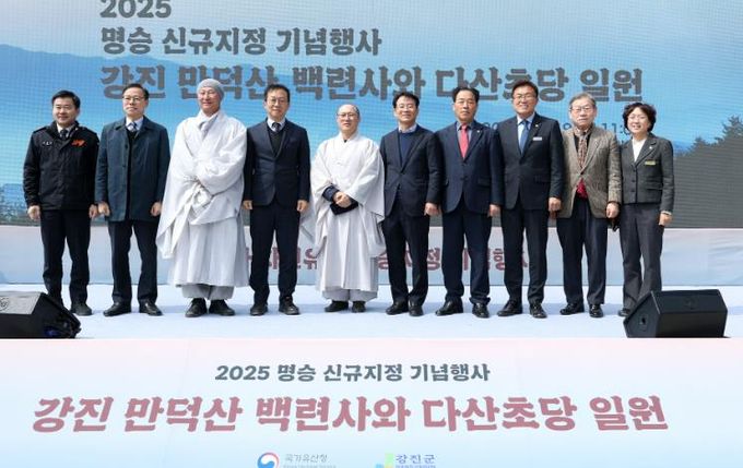 이어 최보근 국가유산청 차장이 강진군과 백련사에 각각 ‘명승’ 지정서를 교부했으며 강진군 문화관광과장과 백련사 주지가 명승 지정 유공자에 선정돼 포상을 받았다.