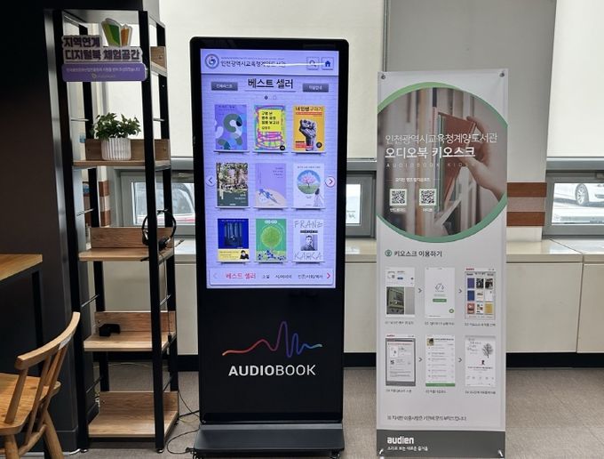 계양도서관 디지털자료실의 오디오북 키오스크에는 베스트셀러 699권이 마련되어 있으며, 별도 회원가입 없이 하루 최대 100권까지 대출할 수 있다.