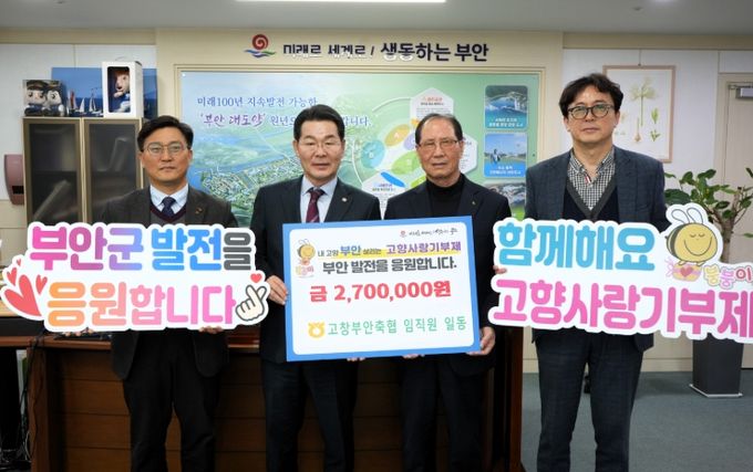 이번 기부는 부안군의 주민 복지와 지역 발전을 위한 사업에 사용될 예정이며 지역 활성화에도 긍정적인 영향을 미칠 것으로 기대된다.