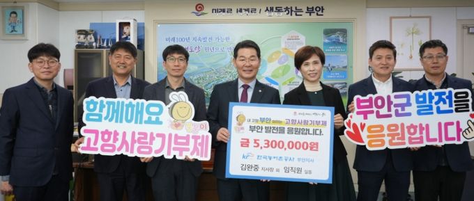 권익현 부안군수는 “농어촌공사 부안지사 임직원들의 따뜻한 기부에 깊이 감사드리며, 기탁해 주신 기부금은 주민 복지와 지역 발전을 위한 다양한 사업에 소중히 활용하겠다”고 전했다.