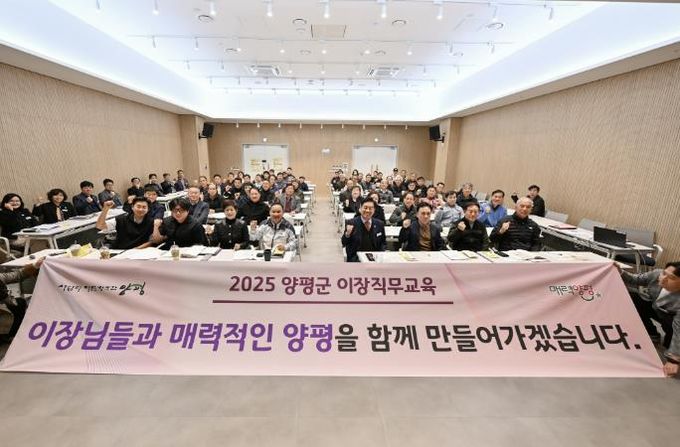 (아름다운교육신문) 양평군은 19일 양평도서관 다목적실에서 신규 이장, 이장협의회장, 이장협의회 사무장, 부읍·면장 등 80여 명이 참석한 가운데 ‘이장 직무교육’을 실시했다. 이날 교육에서는 이장으로서의 소속감과 적응력을 높이고, 이장의 역할과 책임에 대한 마음가짐을 확립하는 데 중점을 뒀다.