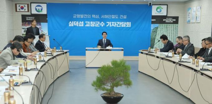 심덕섭 고창군수는 20일 오전 고창군청 2층 상황실에서 ‘서해안철도 건설 및 군정현안 추진사항 언론브리핑’을 열었다.