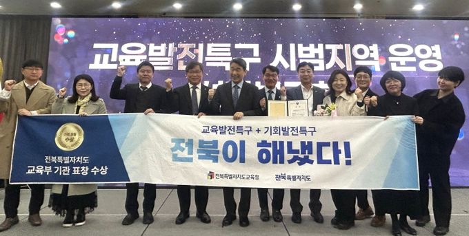 (아름다운교육신문) 전북특별자치도교육청은 전북특별자치도와 함께 추진한 교육발전특구 협력사업이 교육부로부터 우수 운영 사례로 선정돼 기관 표창을 받았다고 20일 밝혔다.