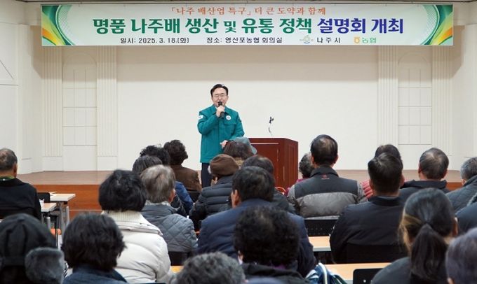 윤병태 나주시장은 “대한민국을 넘어 전 세계인에게 사랑받는 나주배 생산 유통을 위해 농업인들과 지속적인 소통과 협력이 필요하다”며 “이번 설명회를 계기로 농가 현장 애로사항을 최대한 반영해 실효성 있는 지원책을 마련해 나가겠다”고 밝혔다.