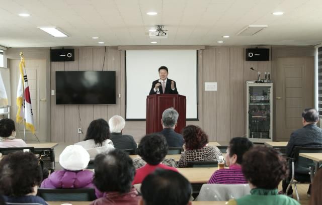 이날 오 시장의 특강은 어르신들이 행복한 노후를 위해 당진시가 추진하는 노인복지 정책 소개와 함께 즐겁고 건강한 노후설계를 위한 경제적 안정과 치매 예방의 중요성을 설명하며 진행됐다.