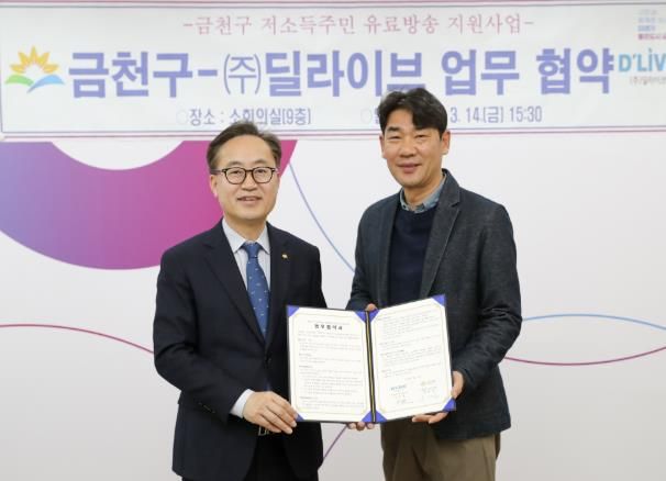 금천구는 지난 14일 유료 방송 이용요금 지원사업을 위해 ㈜딜라이브와 협약을 체결하고, 이코노미형 상품(약 160여개 채널) 요금을 공동 지원하기로 했다.