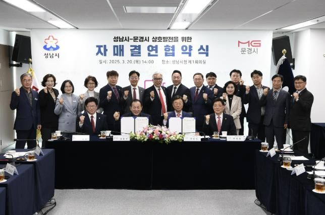 (아름다운교육신문) 경북 문경시와 경기도 성남시(시장 신상진)가 20일 성남시청 제1회의실에서 자매결연 협약을 체결했다고 밝혔다. 이번 협약식에는 신현국 문경시장, 이정걸 문경시의회 의장, 신상진 성남시장, 안광림 성남시의회 부의장, 양 시의원 등이 참석해, 양 도시 간 협력 의지를 굳건히 다졌다.