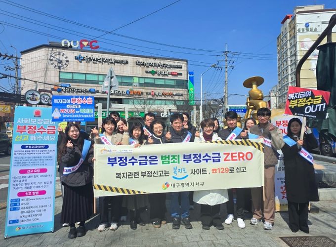 (아름다운교육신문) 대구 서구청은 19일 오후 북비산네거리 일대에서 복지급여 적정성 제고와 복지 재정 누수 방지를 위한 “부정수급 근절 인식 개선 캠페인”을 진행했다.